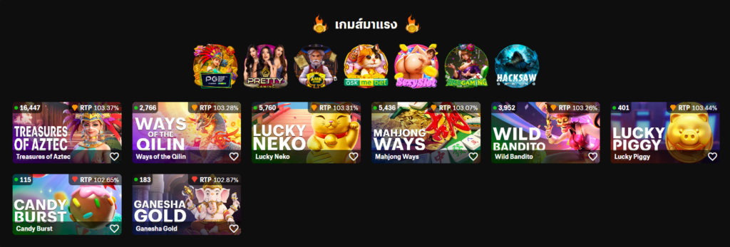 - Pragmatic Play (PP) โดดเด่นด้วยเกมระดับตำนานและโบนัส Jackpot ที่แตกง่ายอย่างสม่ำเสมอ